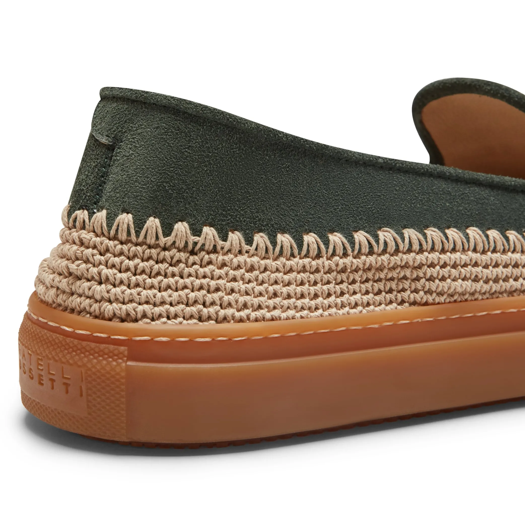 The Green Side project is based on environmental respect, sustainability and craftsmanship. The iconic Brera loafer in a sporty version is made of soft suede. Standout features include the cotton stitching, the bamboo fiber lining and the natural rubber sole, which accentuate the product’s exclusiveness.