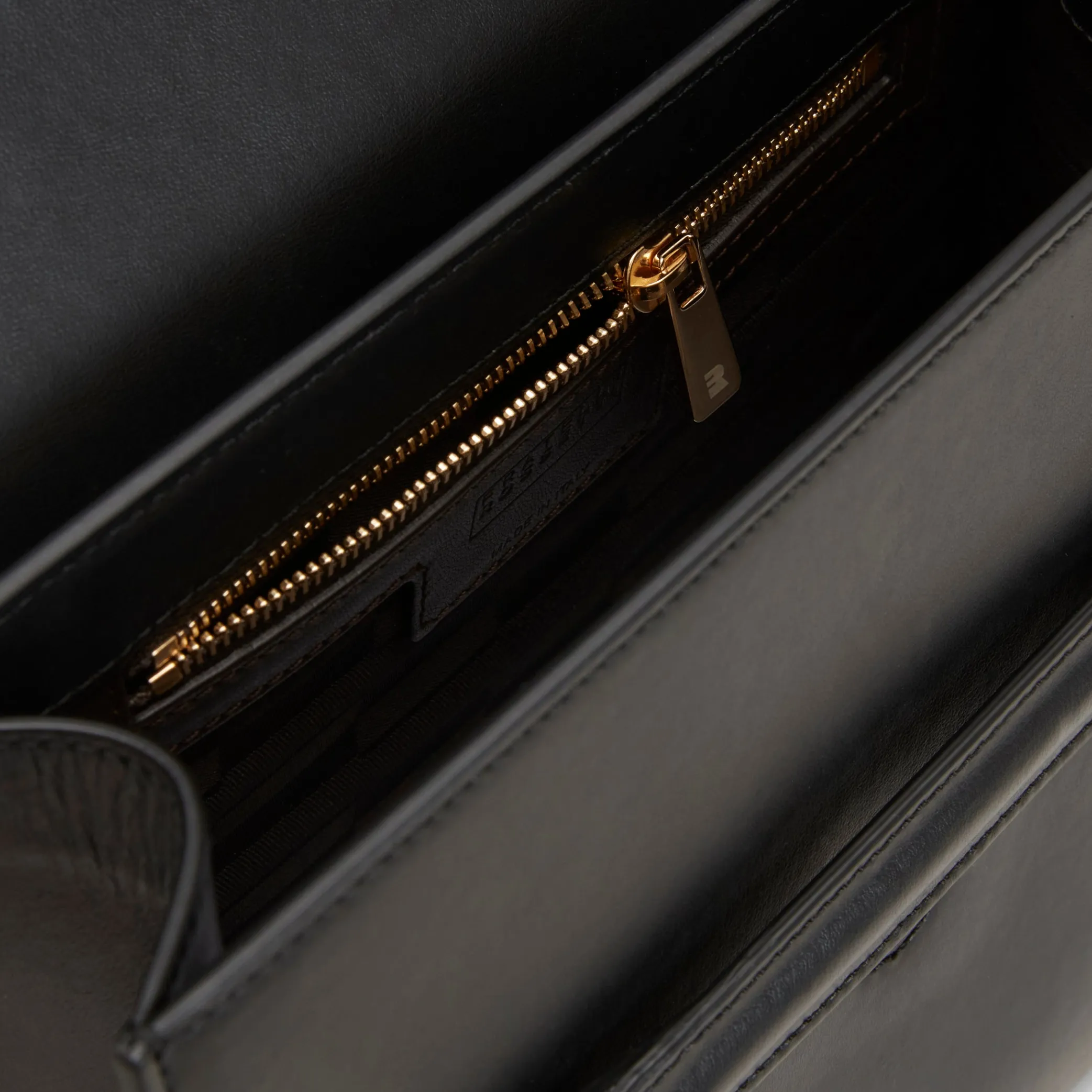 Top Handle bag from the Magenta line, made of soft smooth leather. Magnetic closure featuring the iconic light gold horsebit. Can be worn as a crossbody bag. The main compartment is equipped with a small zip pocket inside and a small pocket on the outside back. Logoed lining. H 21 x L 25 x W 9 cm