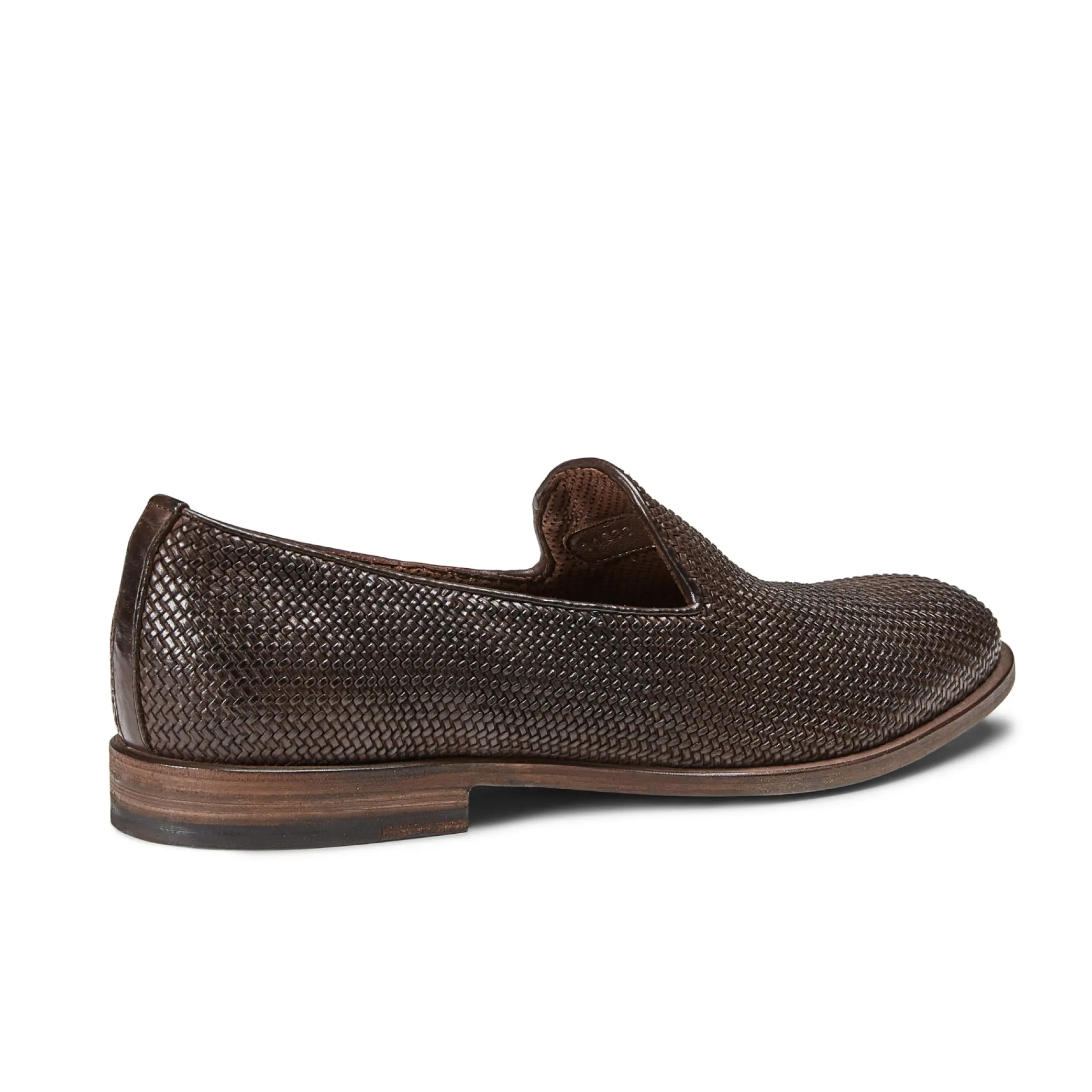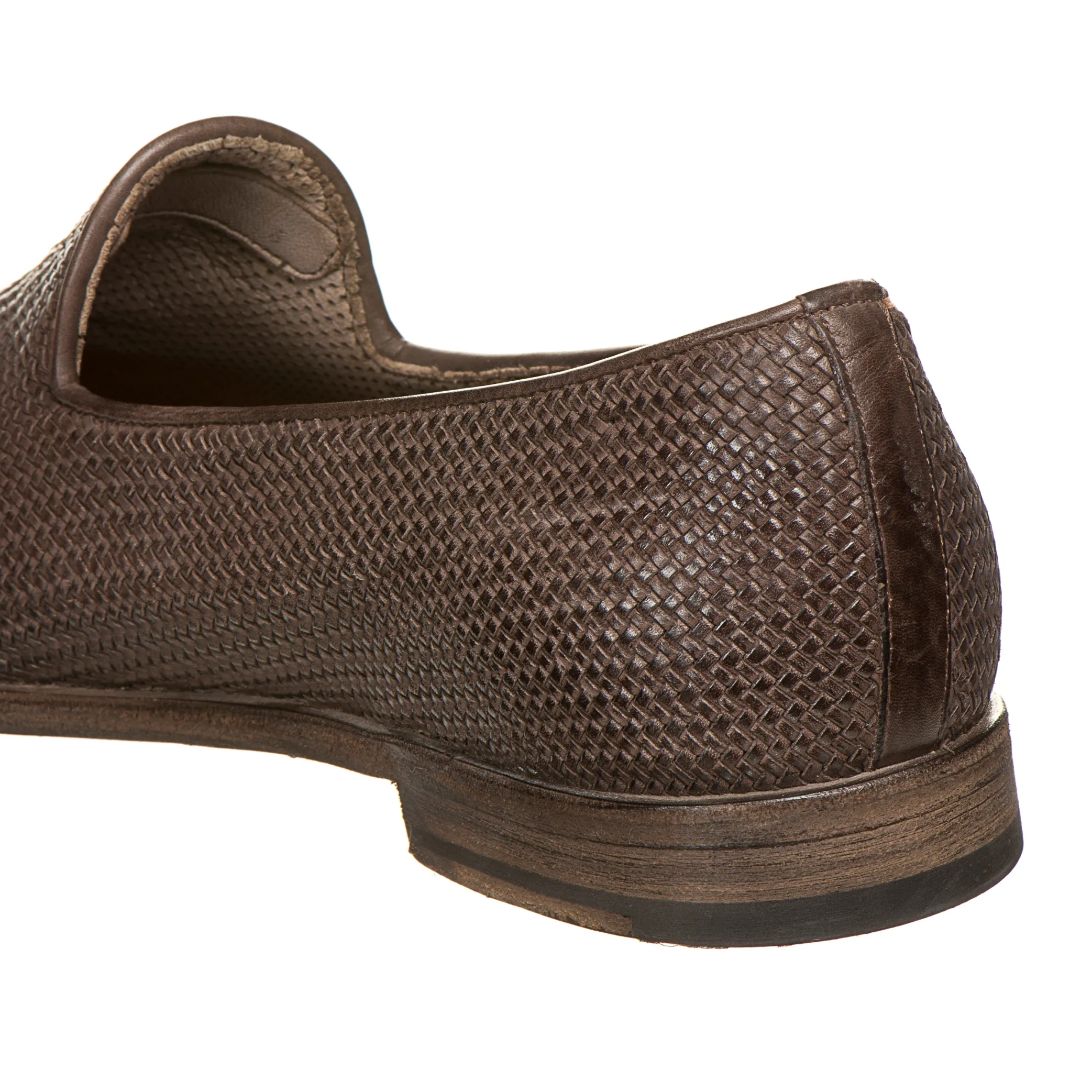 Slipper made of soft woven leather with a shaded, artisan appearance. Maximum comfort is combined with attention to detail in a versatile and timeless shoe. Leather sole.