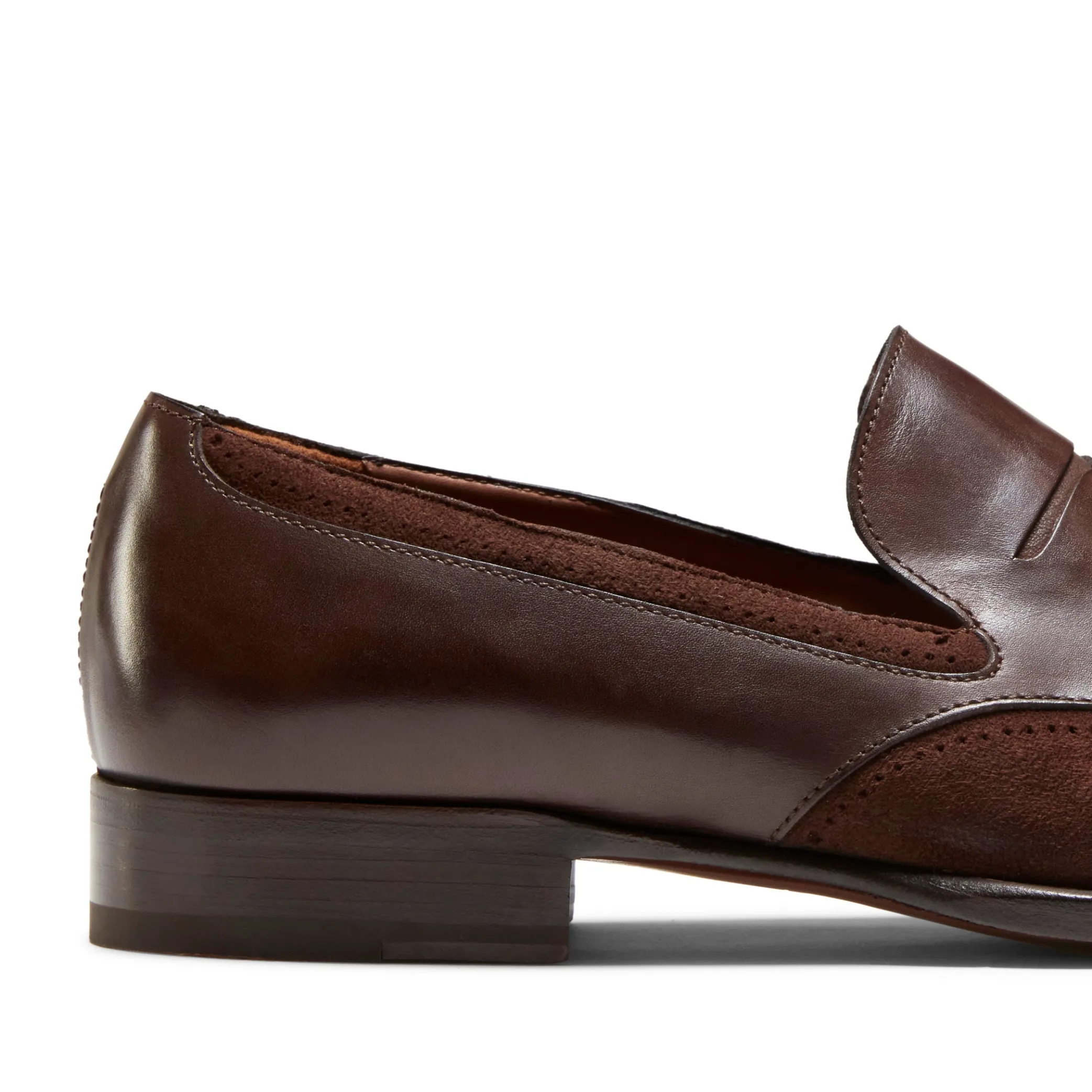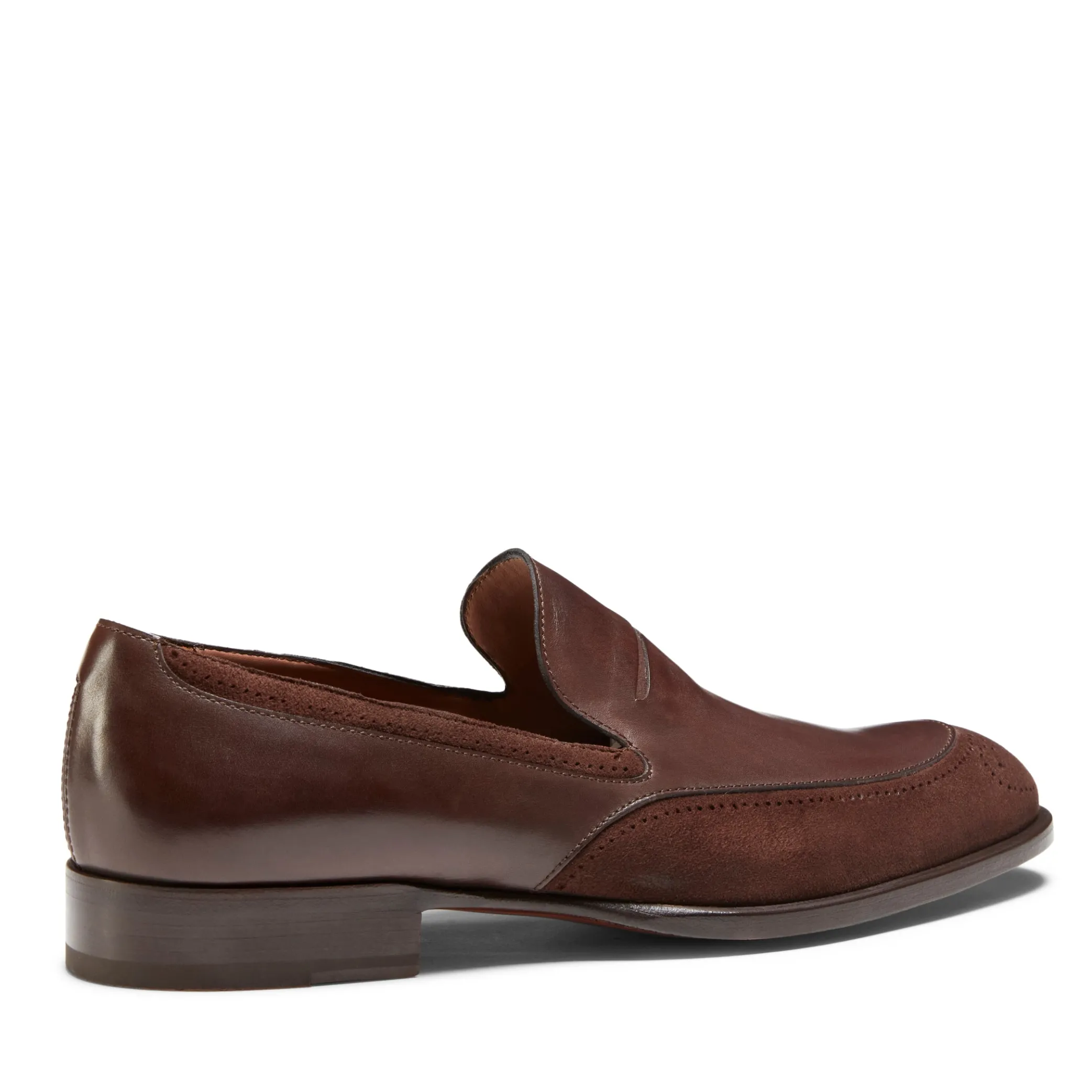Exclusive bi-material penny loafer, made of smooth leather paired with tone-on-tone suede. Leather sole.