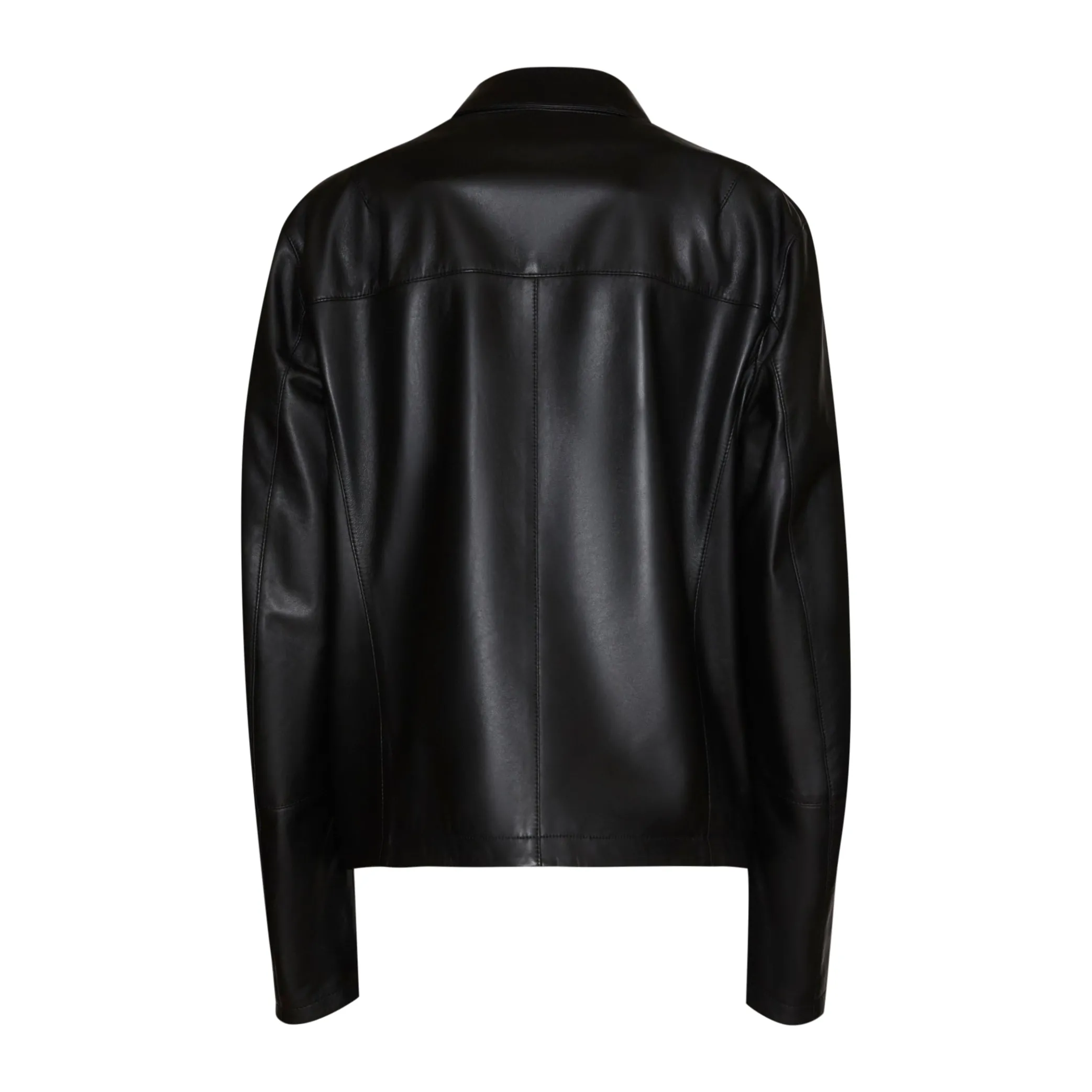 Jacket made of soft nappa leather. The shirt collar and the finely woven nappa leather inserts on the front lend an exclusive, tailored look. Front zip closure with double puller.