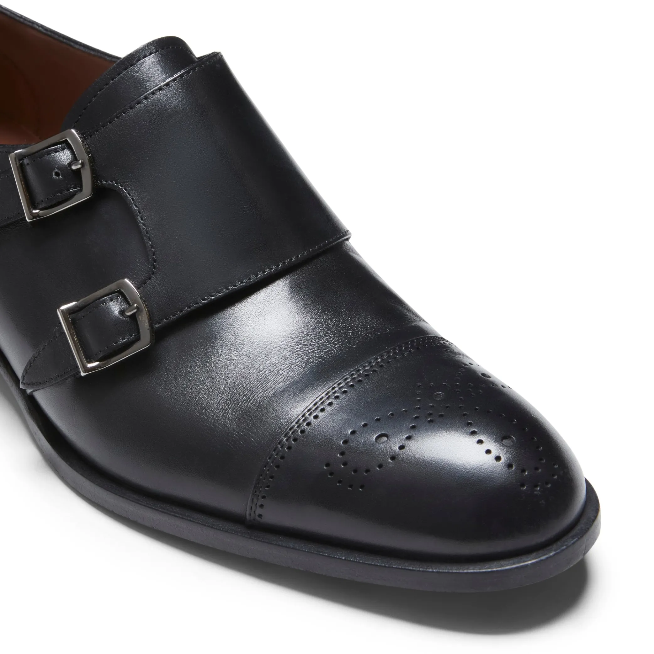 Double-buckle derby shoe made of soft smooth leather with perforations on the toe. The unique workmanship gives the shoe a gradient appearance, accentuated in particular on the toe and spur. Leather sole.