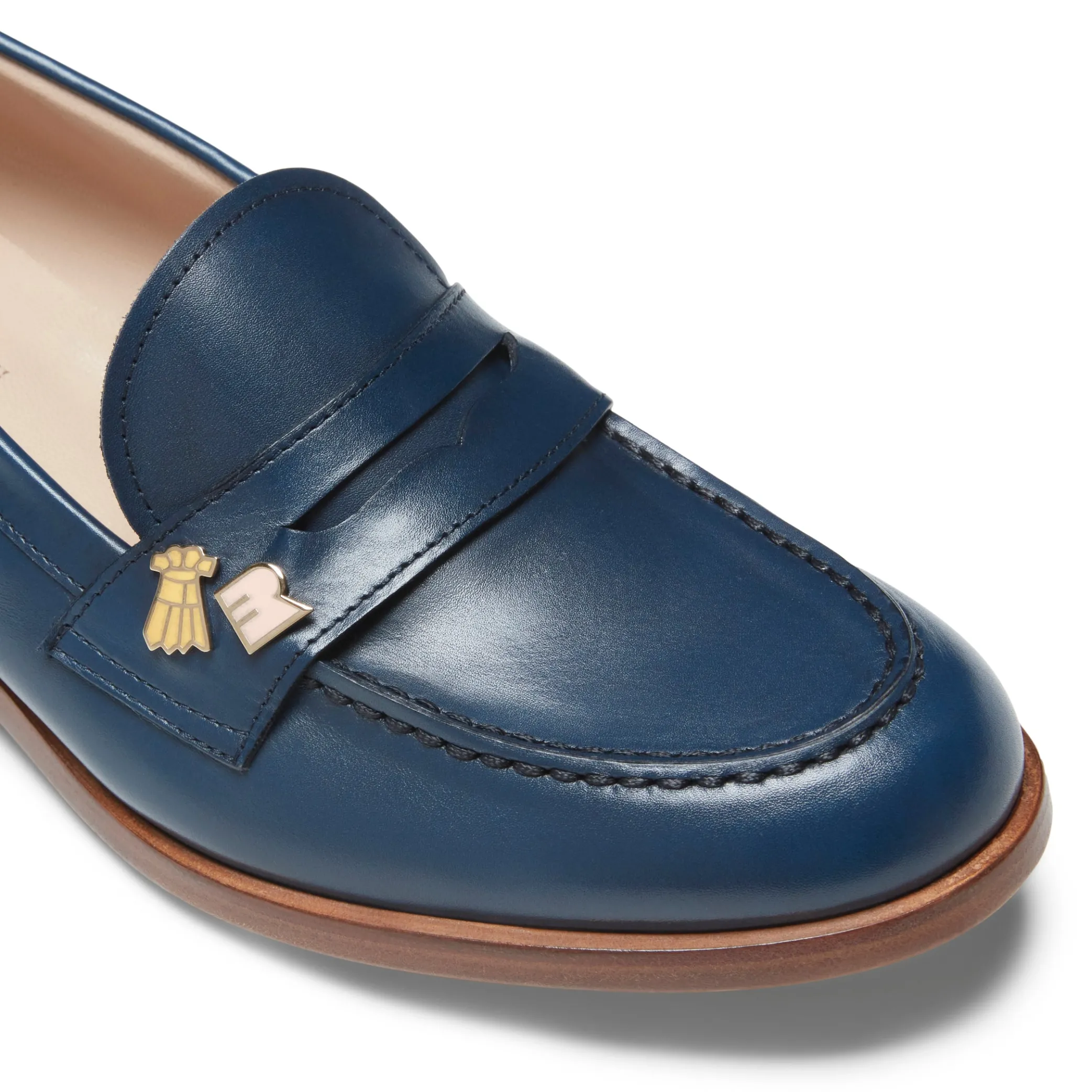 Refined rounded strap moccasin, made of smooth leather with a semi-gloss effect. Embellished with coloured charms that evoke the icons of the Rossetti world. Leather sole.