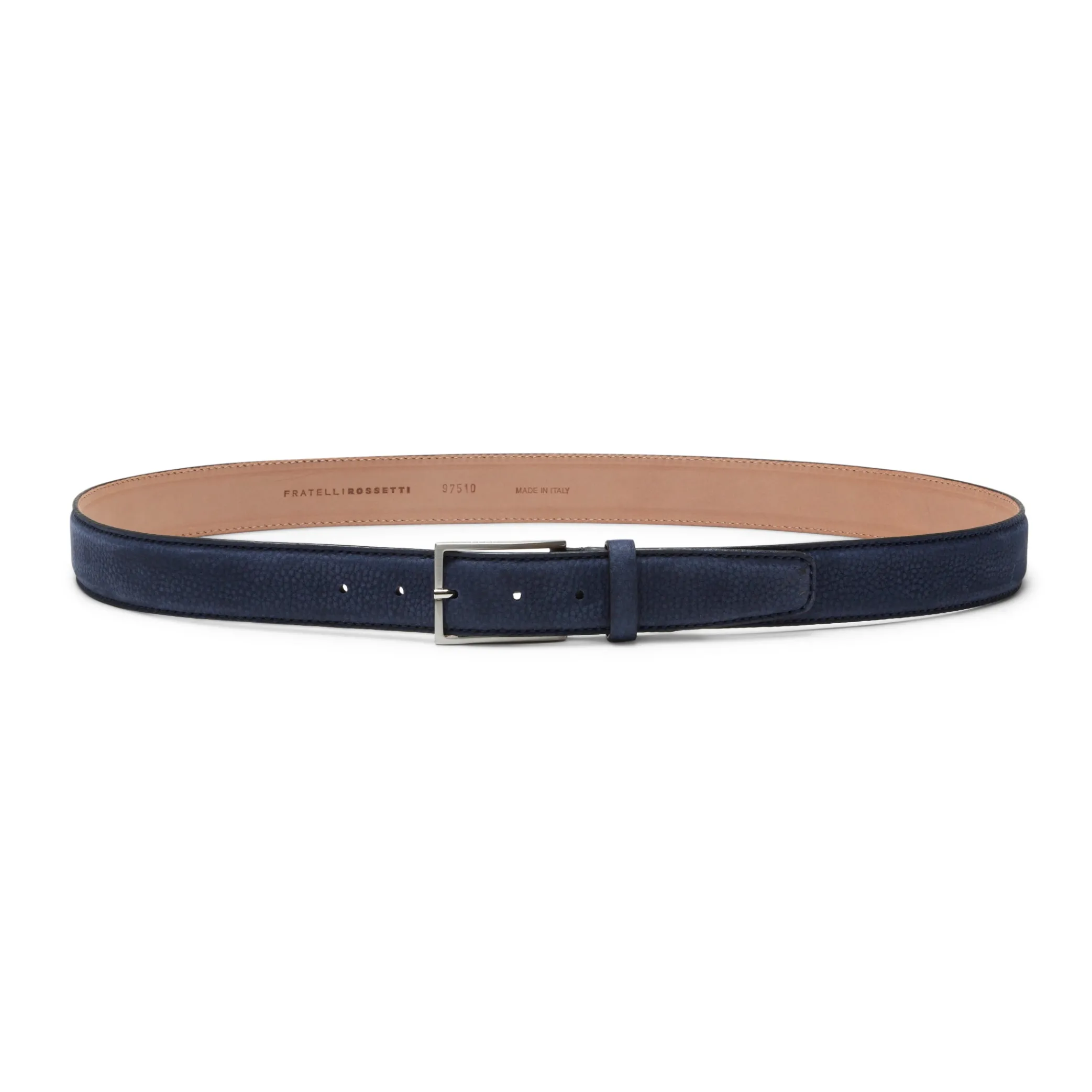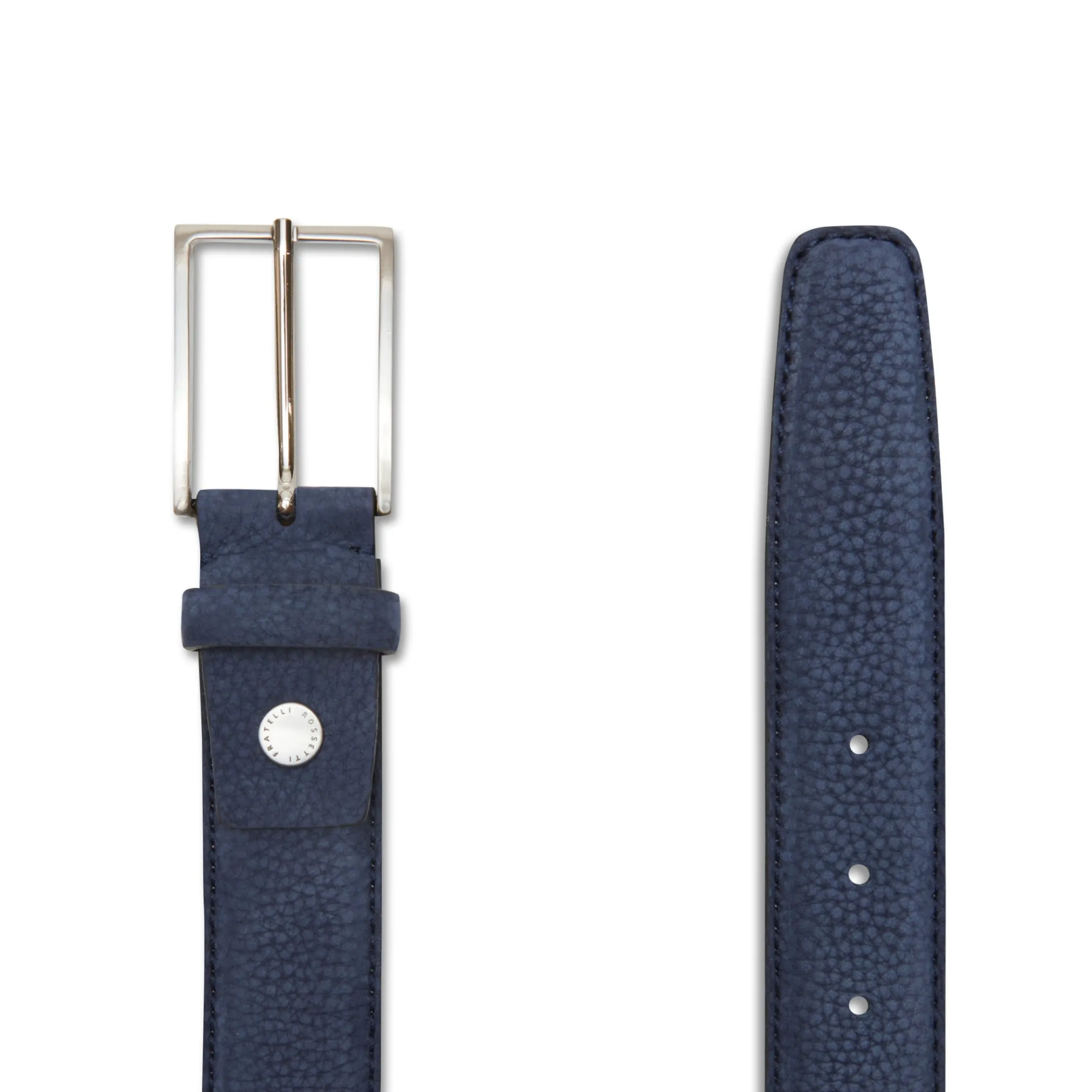 Men’s belt made of soft nubuck leather with visible grain. Palladium buckle. It can easily be cut to measure. Height 3,5 cm.