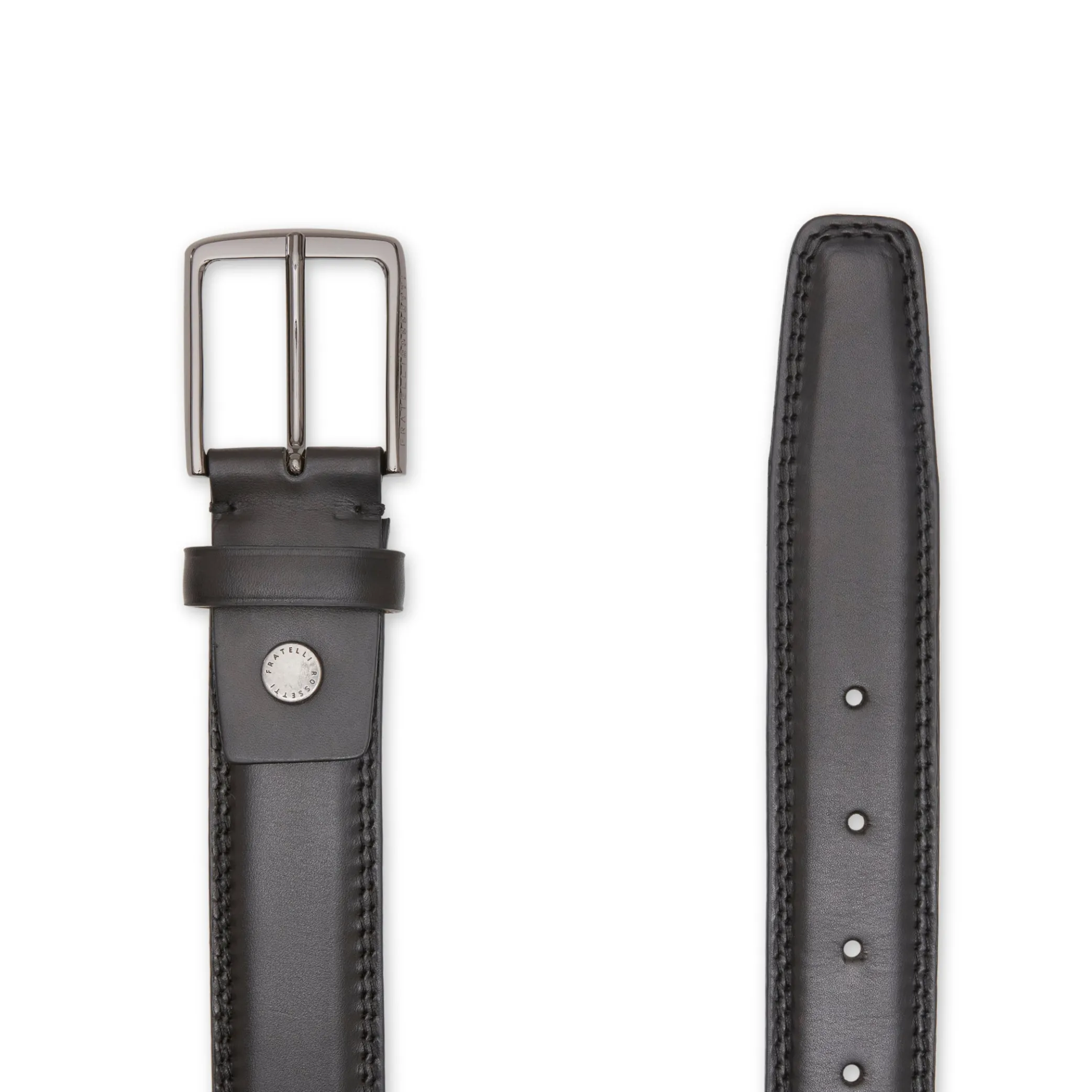Men’s belt in smooth black leather. Height 3.5 cm. Ruthenium buckle.