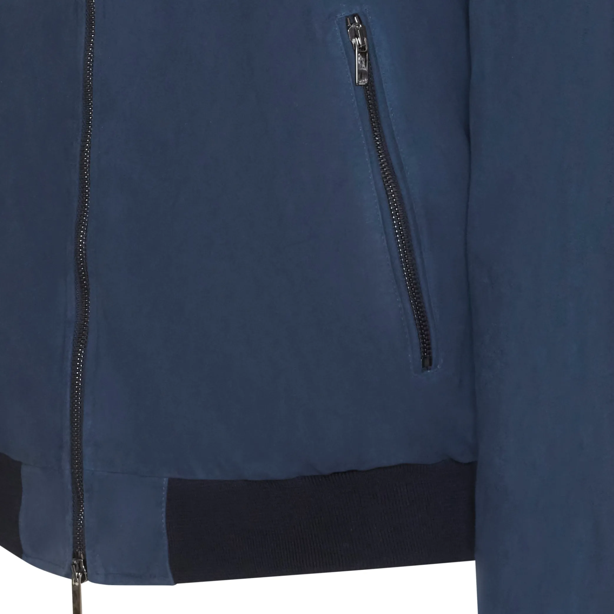 Bomber jacket made of soft suede. Featuring tone-on-tone knitted collar, cuffs and hem. Must have design, with casual and refined flair.