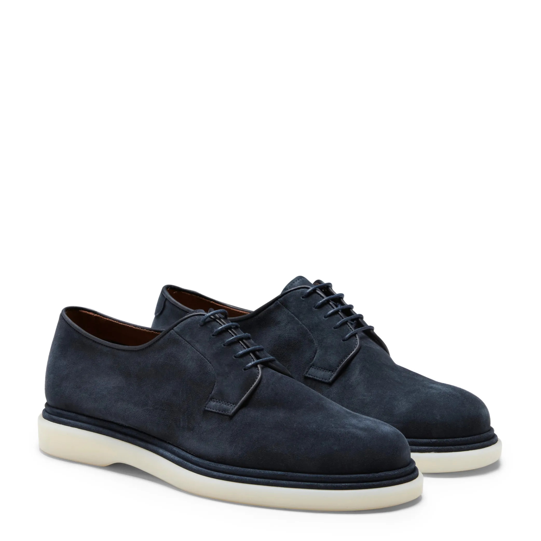 Lace-up derby shoe made of soft suede. Featuring stylish details such as a welt covered in leather that matches the upper, this shoe offers a casual look. Lightweight rubber sole.