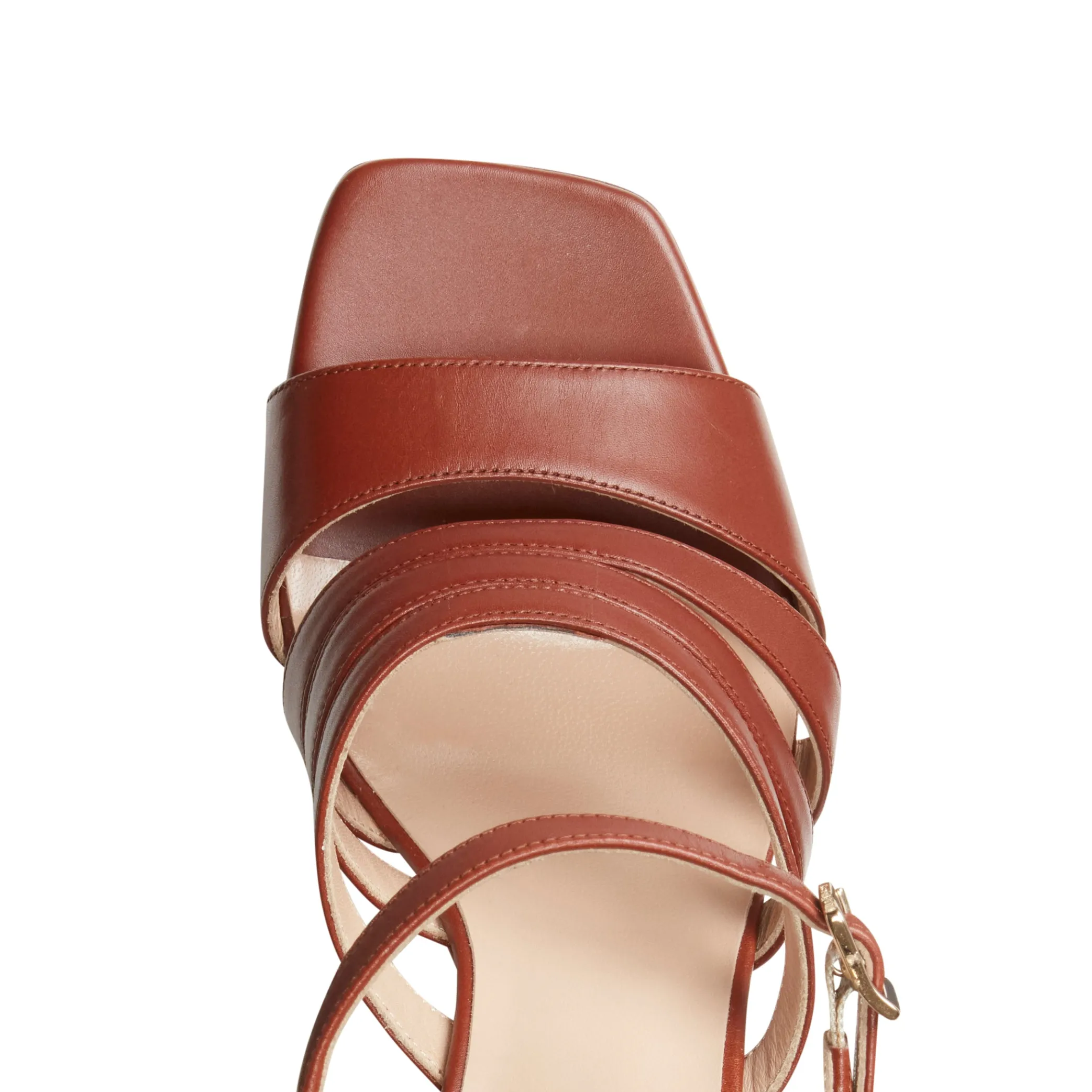 Refined and feminine sandal made of soft smooth leather. Featuring straps that wrap around the foot, slimming the figure. 70 mm flared leather-covered heel.