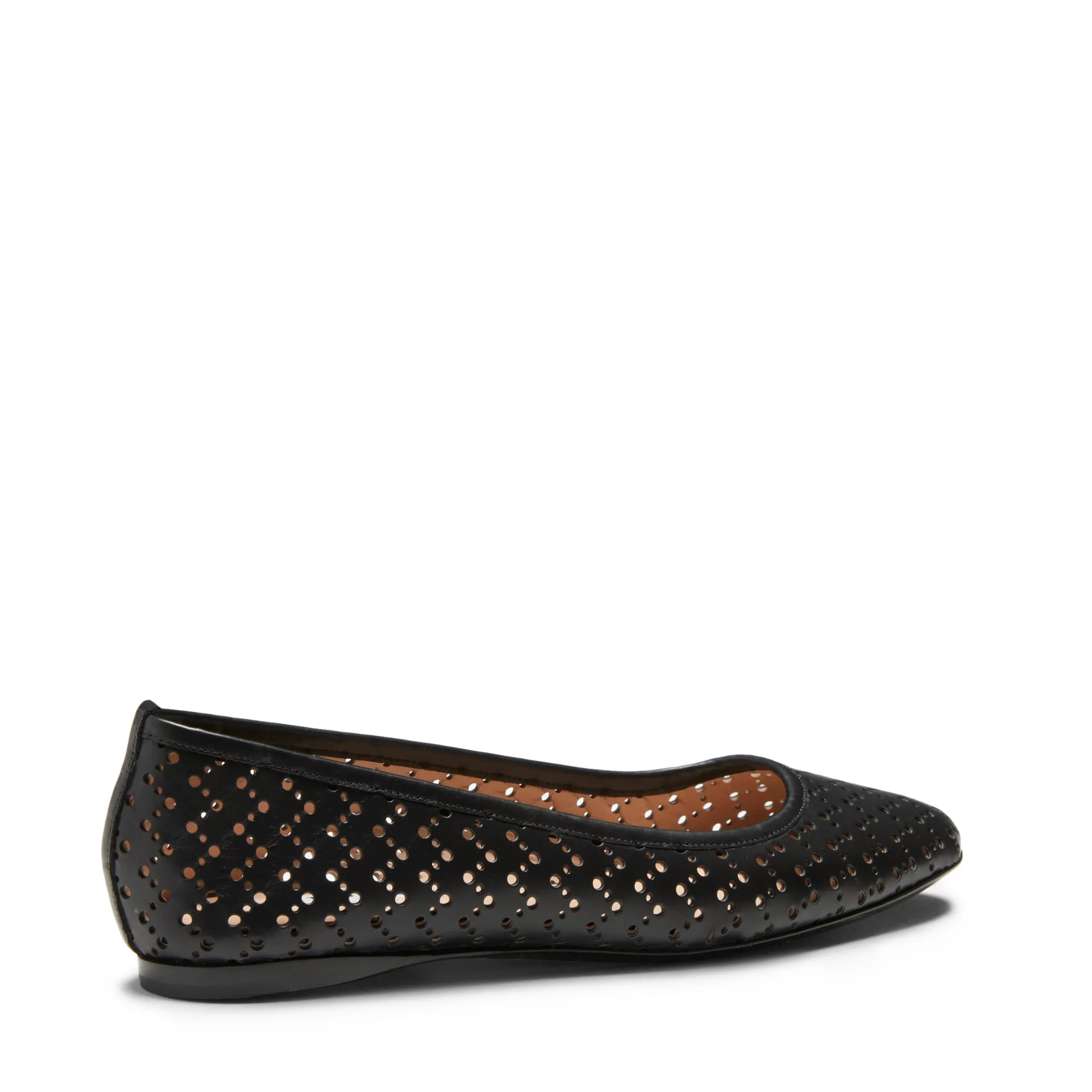 Elegant ballet flat made of soft smooth leather. Sophisticated and feminine in its minimal appearance, embellished with perforations in different sizes. Leather sole.
