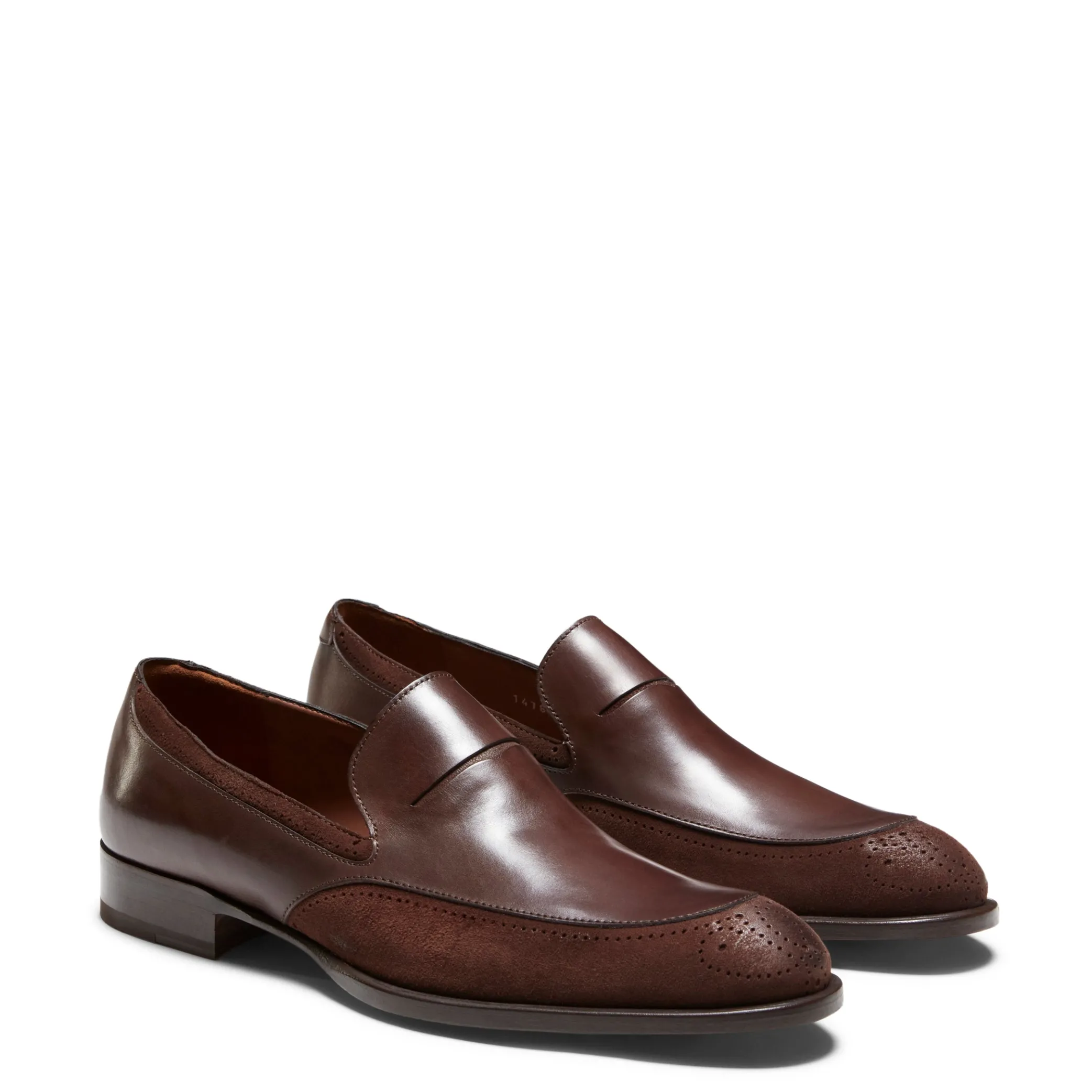 Exclusive bi-material penny loafer, made of smooth leather paired with tone-on-tone suede. Leather sole.