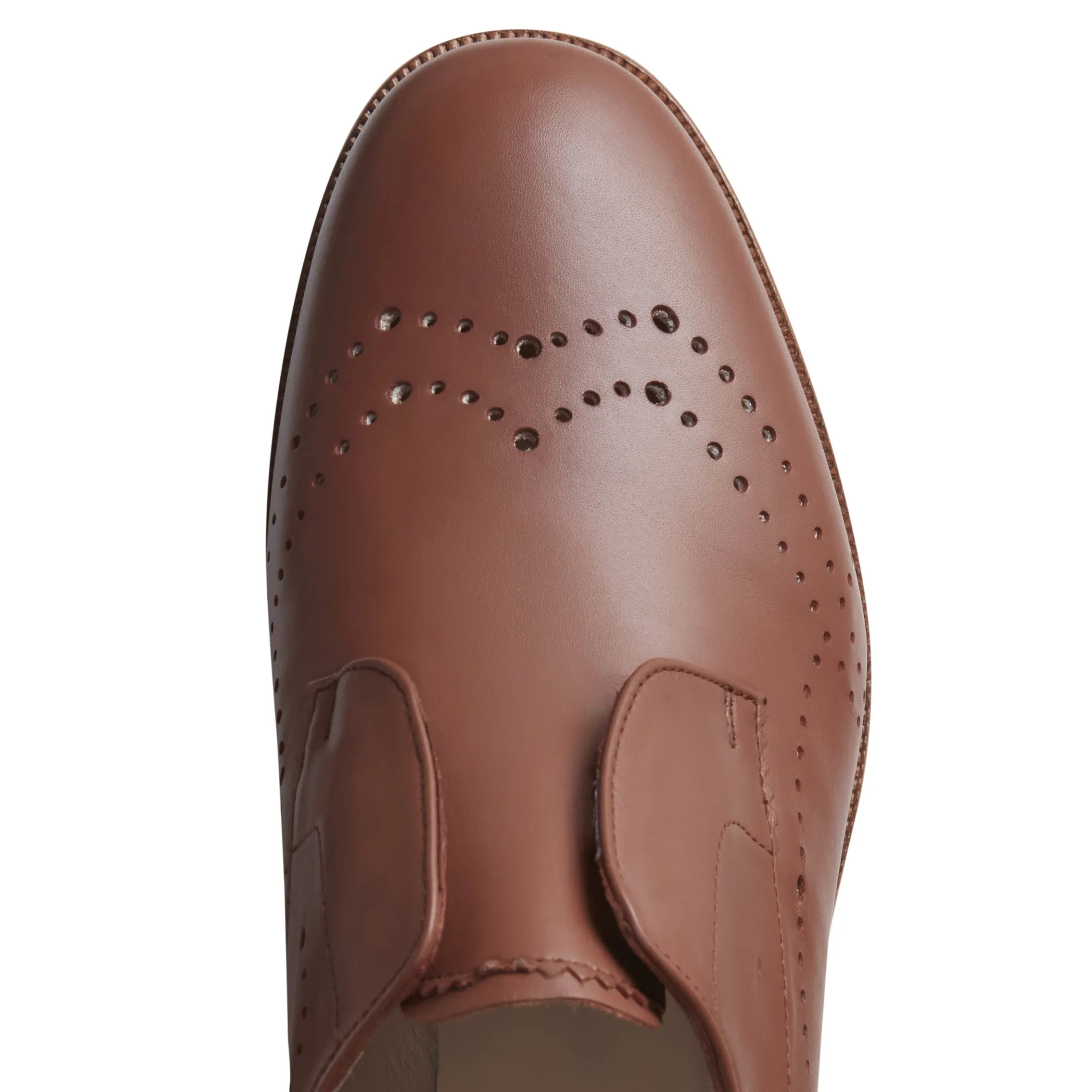 Laceless derby shoe with a slightly elongated shape, made of soft, unlined smooth leather with holes that form a flower on the toe. The perfect combination of androgynous style and refined details.