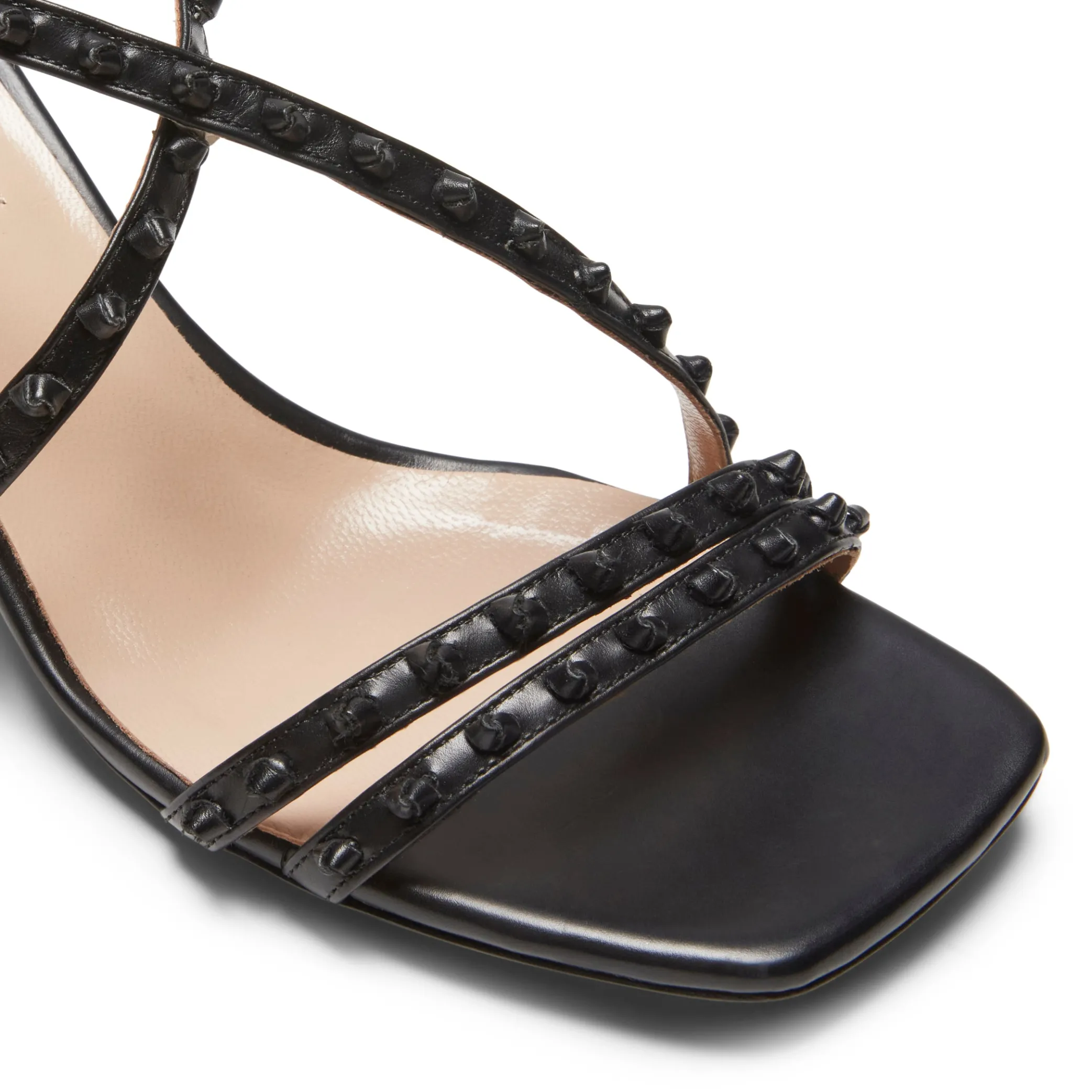 Sophisticated square-shaped leather sandal. Characterized by straps finished with small leather knots that wrap the foot and slim the silhouette. 60 mm heel.<