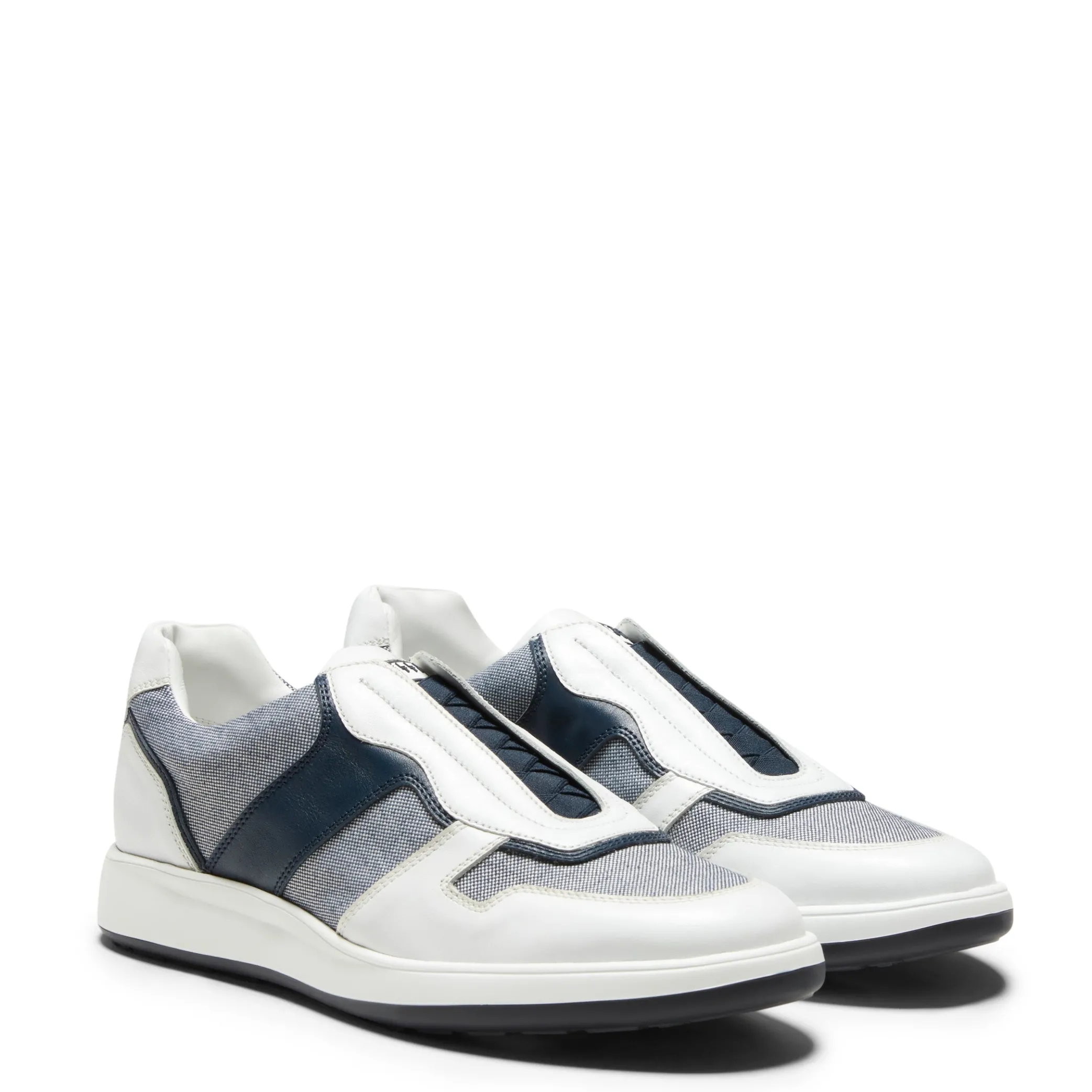 Sneaker with a sporty look made of leather, suede and technical fabric with contrasting-colour edges. Slip-on shoe with woven elastic. The perfect combination of comfort and contemporary style.